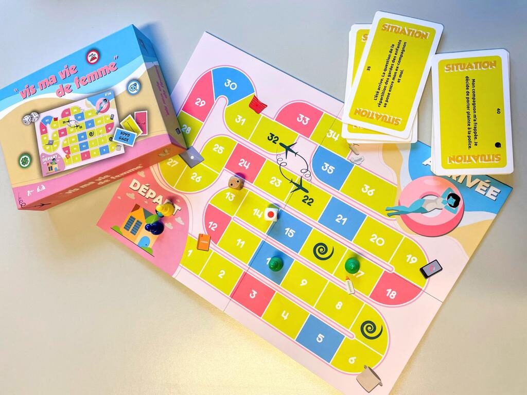 Parfois provocatrices, parfois humoristiques, parfois dures mais toujours interpellantes, les situations qu’elles y évoquent sont liées à diverses sphères de leur vie quotidienne, abordées sous un point de vue exclusivement féminin et pluriel: maternité et éducation (y inclus monoparentalité et famille recomposée), accès à l’emploi, au logement et aux soins, vie quotidienne et partage des tâches domestiques, relation de couple et sexualité, précarité menstruelle, justice et gestion des séparations, violences entre partenaires, consentement et agressions sexuelles, violences gynécologiques, racisme et discriminations diverses (liées au poids, à l’âge, au handicap, …) … et même des situations en lien avec la vie de famille en confinement…Toute ressemblance avec des situations réelles ne serait donc (absolument pas) purement fortuite ! Au contraire, tout ce qui est évoqué a réellement été vécu par les créatrices et leur entourage (gardez cela en tête en jouant) et servira de base à vos échanges, but premier de ce jeu.